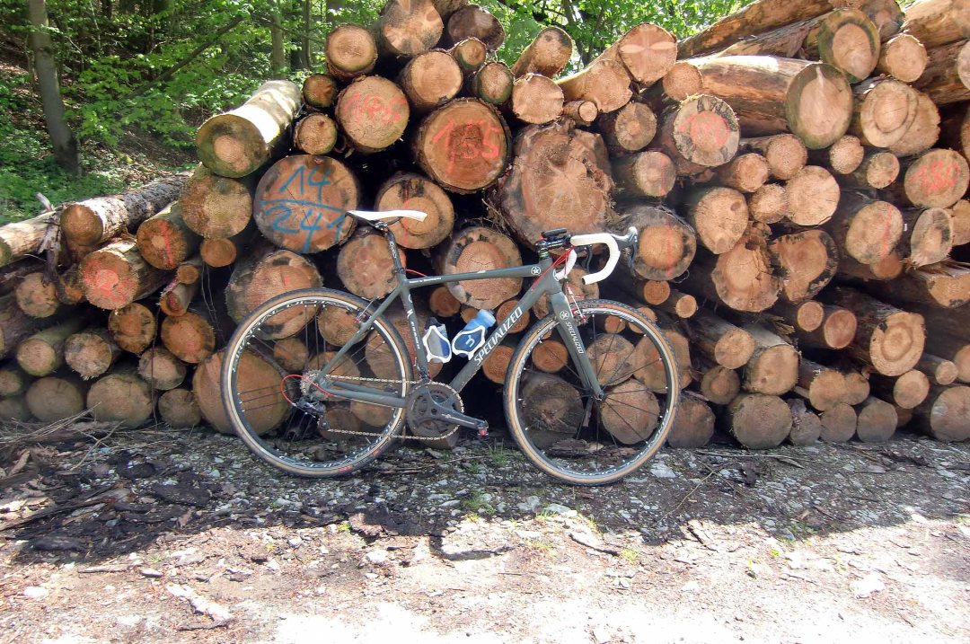 40 kms of rough stuff, kolonweg and kopfsteinpflaster, mit cakes, watch towers and an old Jewish Cemetery on our May 5 ride.