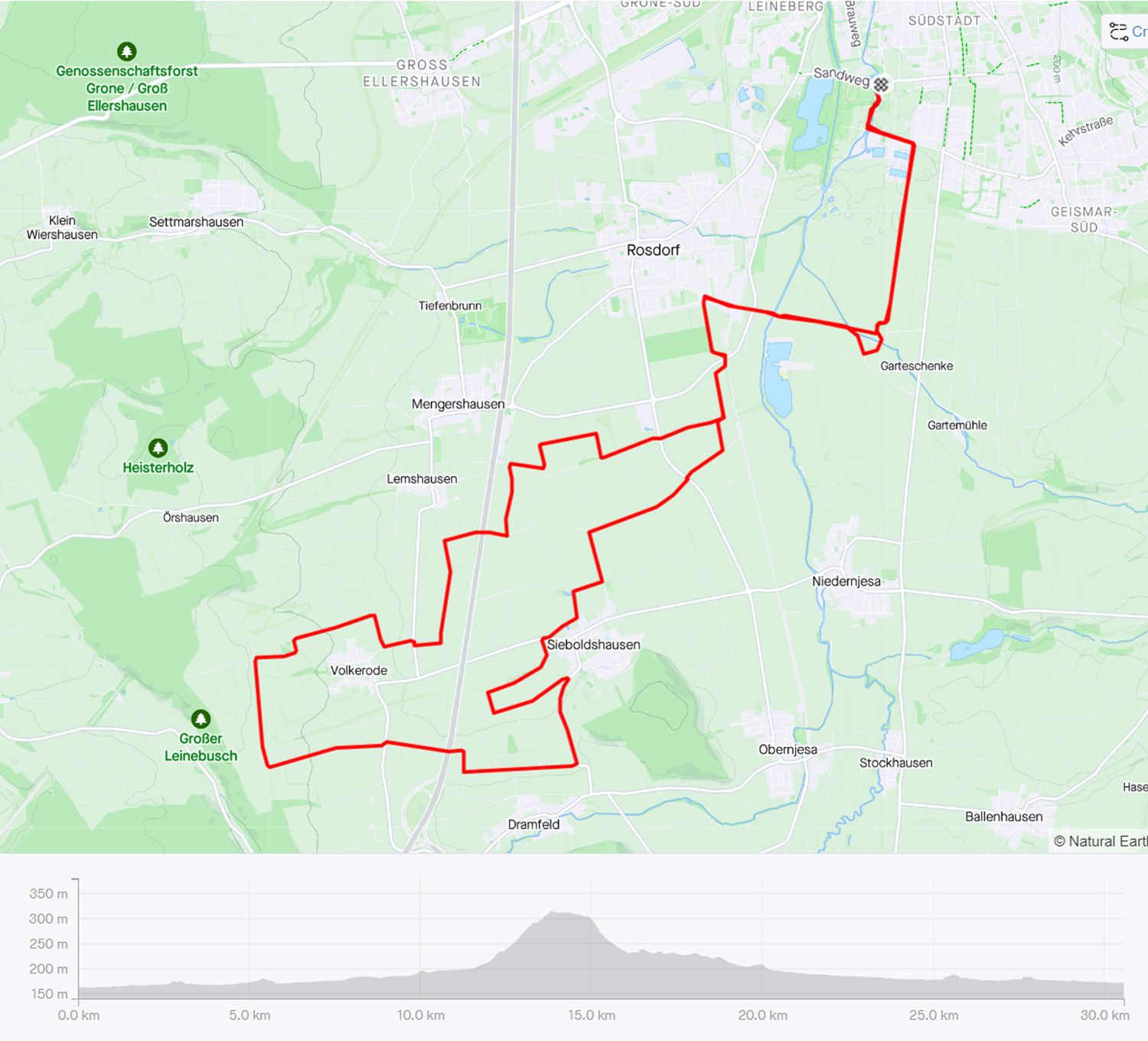This is a shorter version of the Gö Strade Bianche and is held to the west of Göttingen heading through Rosdorf to the high ground above Volkerode. Whereafter we descend back into the Leine Valley via Sieboldhausen. Keeping it all Westside.