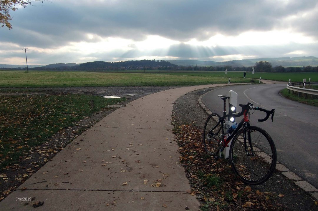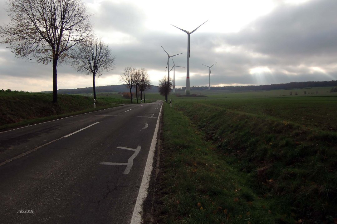 We criss-crossed both the railway and the motorway a number of times on this road ride out to Friedland after pushing into a tough wind.